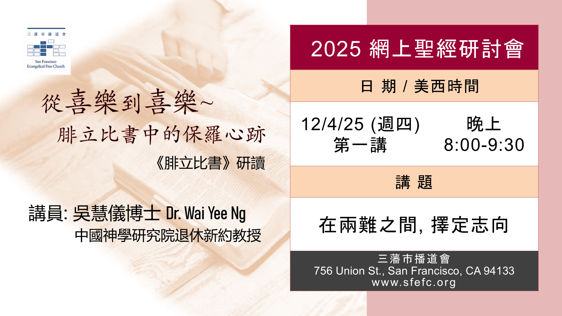 2025 三藩市播道會網上聖經研討會